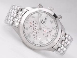 When looking at the face of the replica watches, you’ll find that they’re both expansive thanks to slim bezels. The Portugieser Chronograph ref. IWC fake watch has its characteristic duo of registers at the top and bottom of the dials—the minute counter followed by the running seconds, respectively. What’s more, the slate dial houses Arabic numerals all around in addition to the tachymeter scale on the periphery.